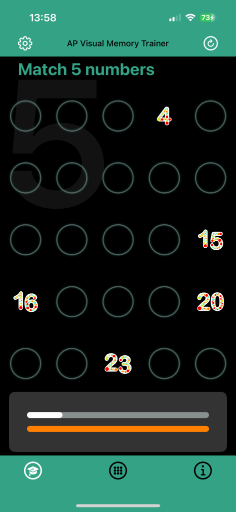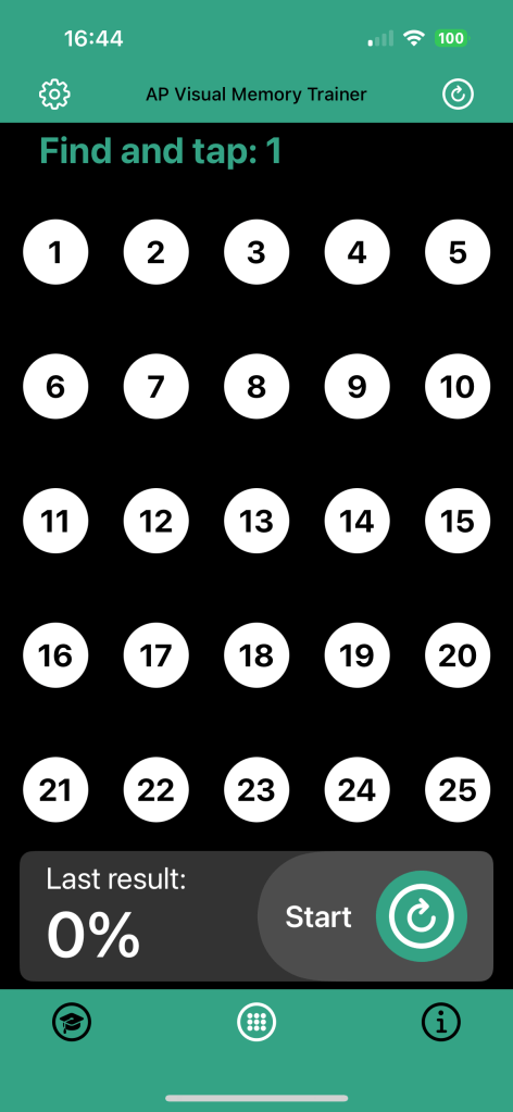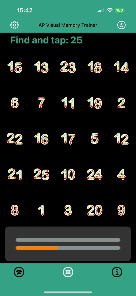 The AP Visual Memory Trainer — a fun and interactive iOS app designed especially for students of all ages! This app uses a clever trick called Schulte Tables, which are grids that help sharpen your focus, memory, and visual skills.